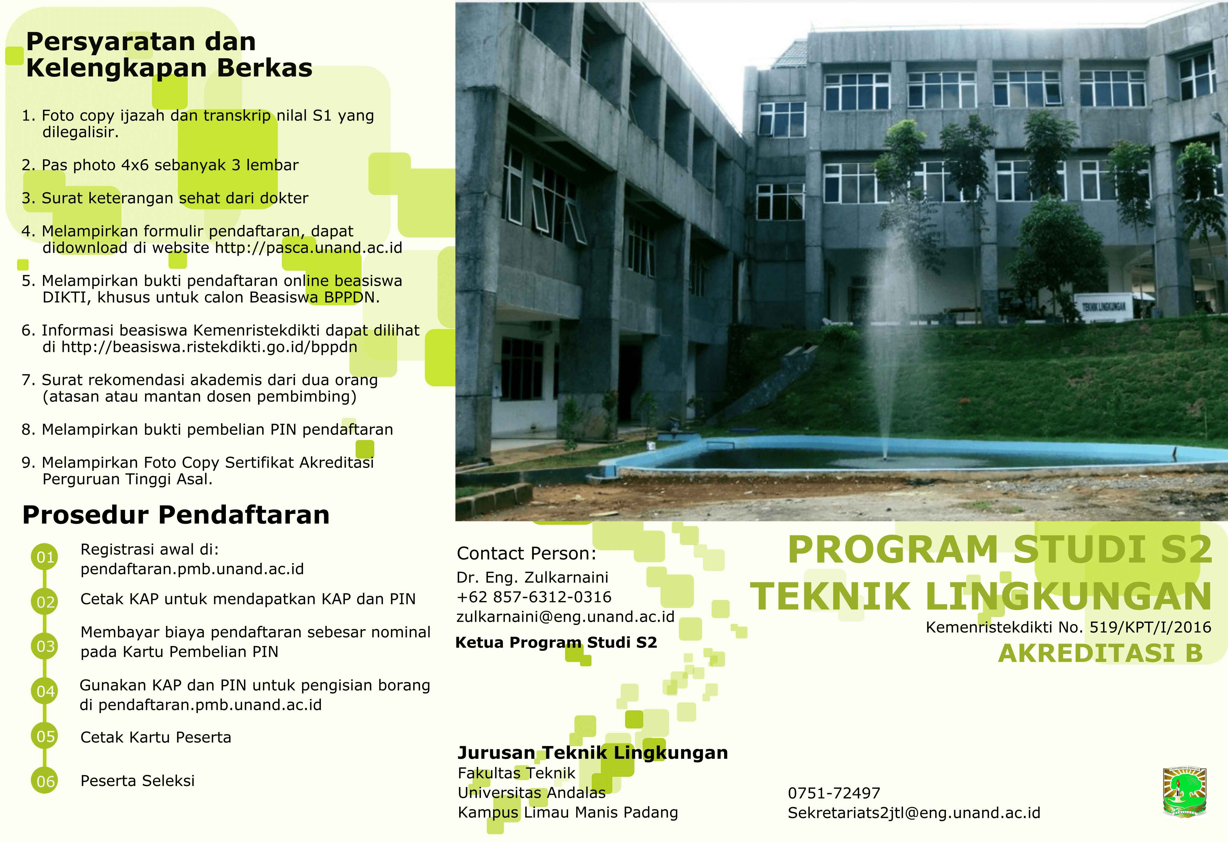 - Terdaftar sebagai mahasiswa S2 Infrastruktur Sanitasi Lingkungan (S2 ISL) Unand