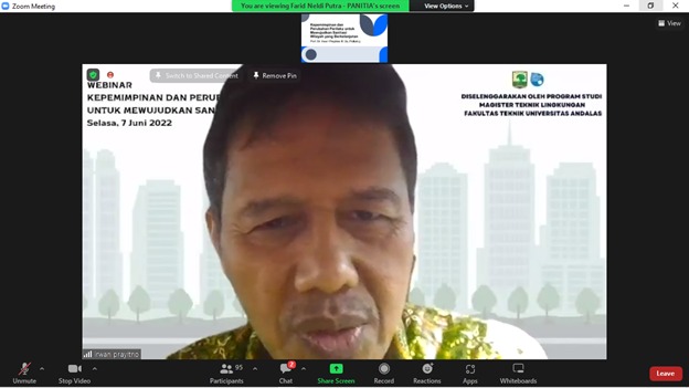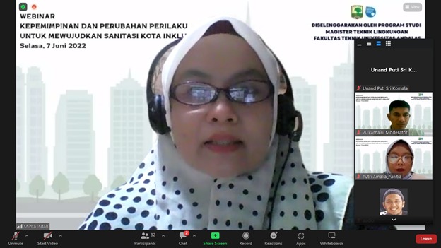 Kegiatan webinar dibuka dengan kata sambutan dari ibu Dr. Eng. Shinta Indah selaku ketua Program Studi Magister Departemen Teknik Lingkungan (DTL) Unand yang kemudian diikuti dengan penyerahan diskusi dari pembawa acara kepada moderator yang pada kesempatan tersebut dipimpin oleh bapak Dr. Eng. Zulkarnaini, staf dosen magister DTL Unand. Pemaparan dimulai dari bapak Prof. Irwan Prayitno yang menjelaskan bagaimana pengalaman beliau dalam mengaplikasikan kebijakan mengenai sanitasi selama periode kepemimpinan beliau di Sumatera Barat. Pembicara kedua, ibu Maraita Listiyasari kemudian melanjutkan pemaparan materi mengenai penjelasan teknis mengenai implementasi sanitasi yang sedang harus dicapai ke depan di Indonesia. Hal ini juga terkait dengan RPJM Indonesia yang akan menerapkan SDG's sampai dengan 2030 nanti.